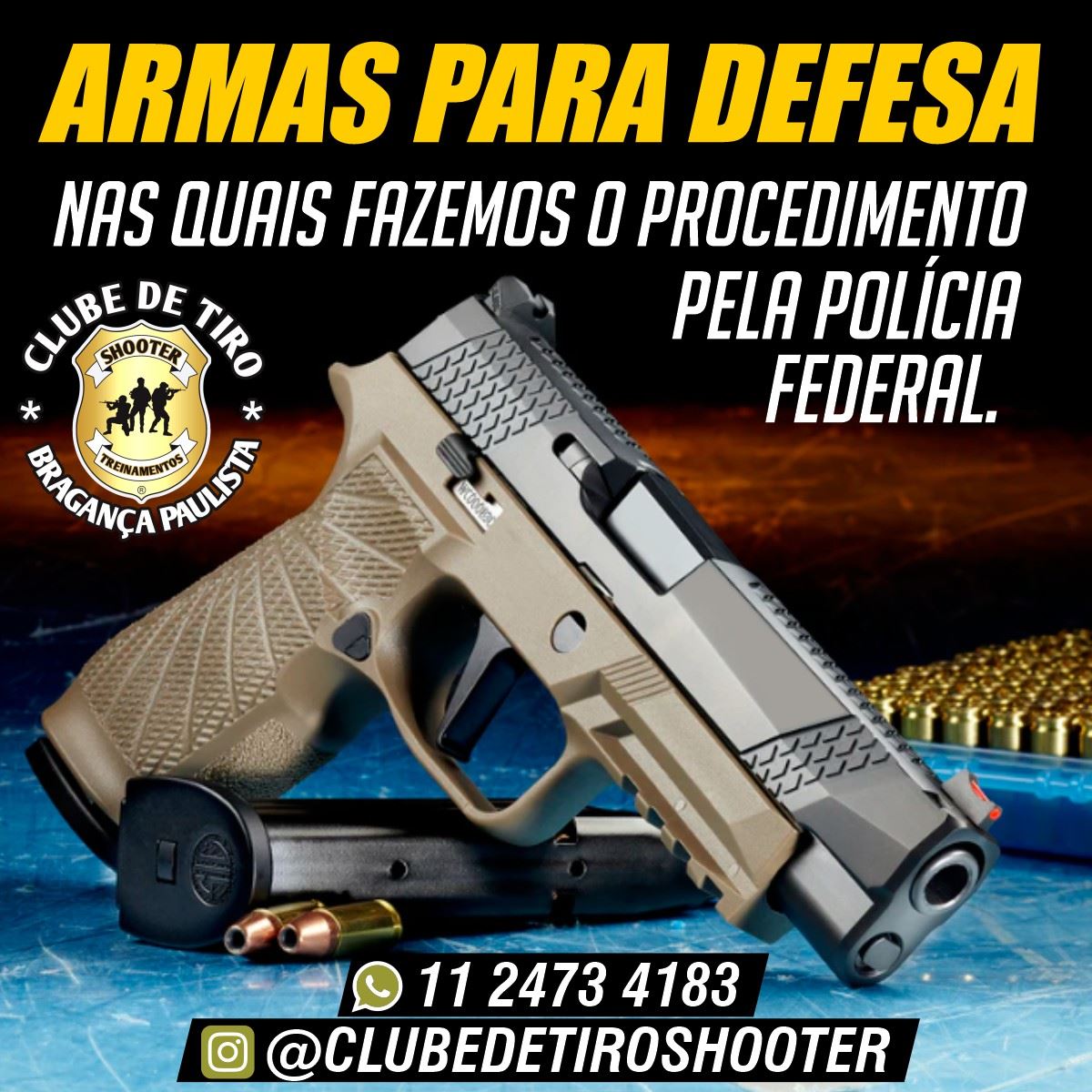As armas de fogo registradas junto à Polícia Federal são cadastradas no SINARM (Sistema Nacional de Armas). Conheça o serviço especializado do Clube de Tiro Shooter Treinamentos! Por estamos na FASE VERMELHA estamos trabalhando interno e o atendimento é via telefone.
